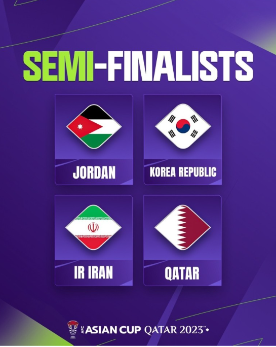 8강결과 대한민국, 요르단, 카타르, 이란이 4강을 치루게 되었습니다.