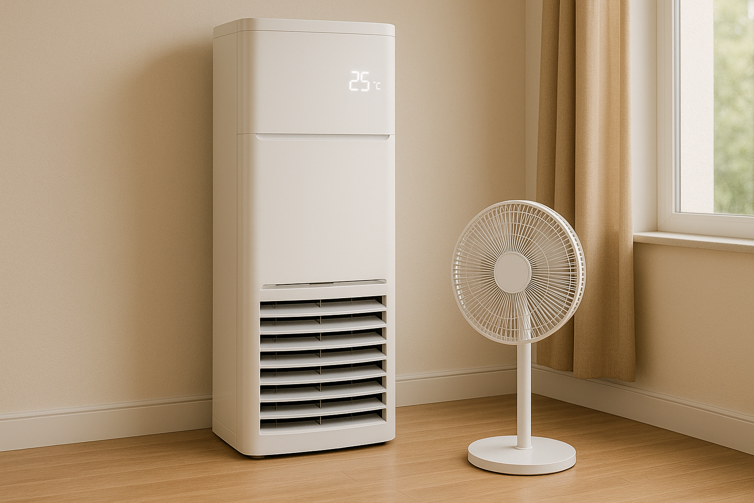 에어컨만 켜는 것보다 선풍기를 함께 사용하면 실내 공기가 순환되어 냉기가 빠르게 퍼집니다.